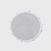 Tapete redondo de algodão macio em cor natural com borda nas cores e acabamento com pompons de algodão ao redor. Feito à mão. Tintas naturais. 100% algodão orgânico. Lavável em máquina.