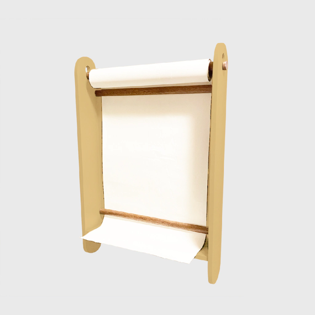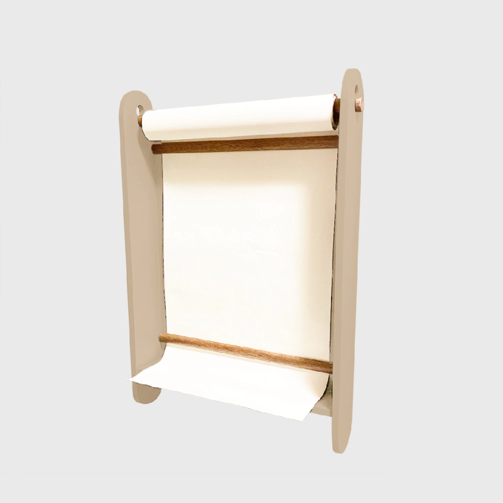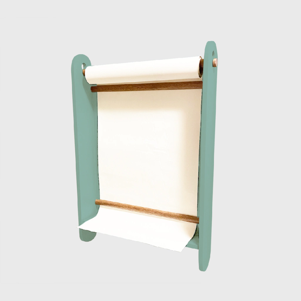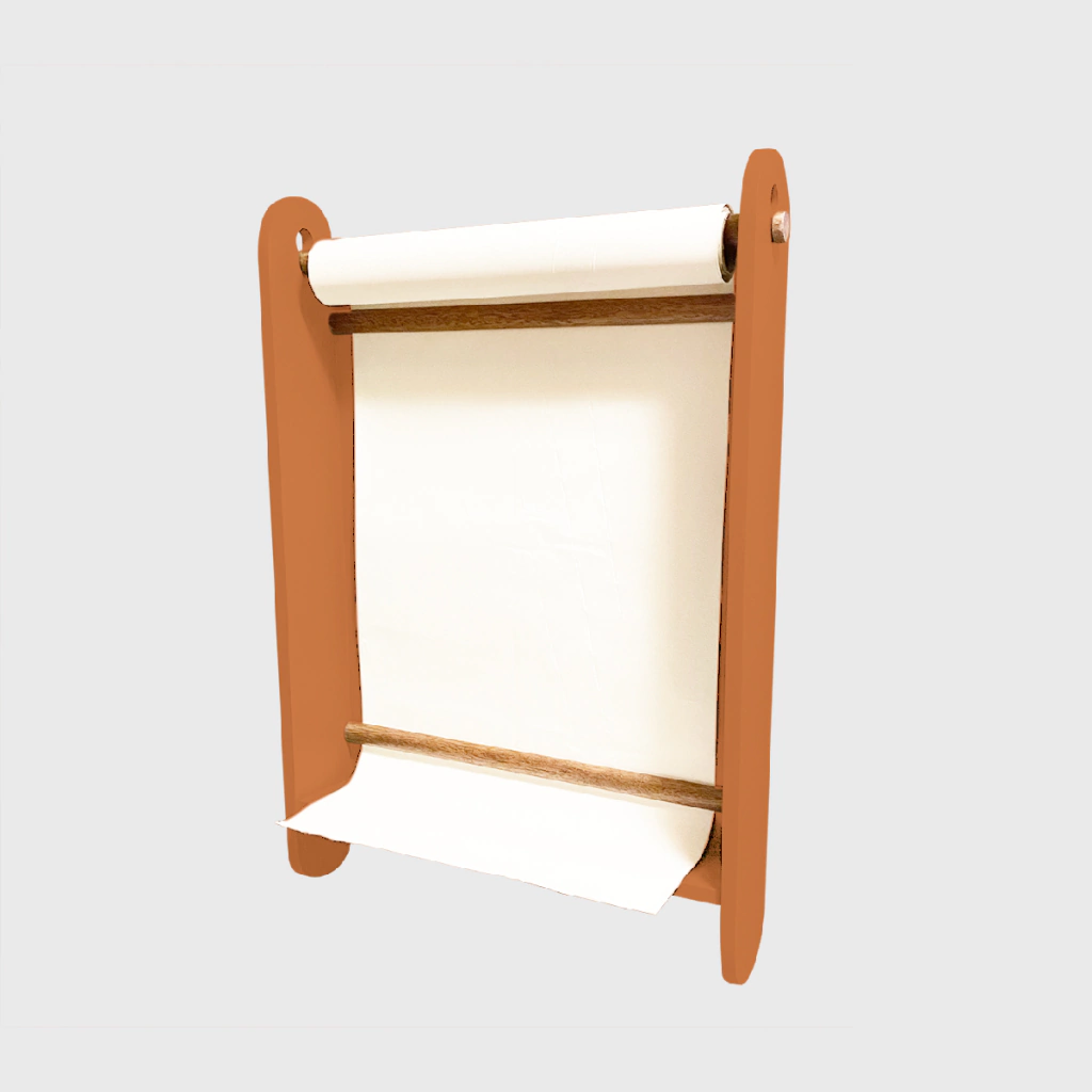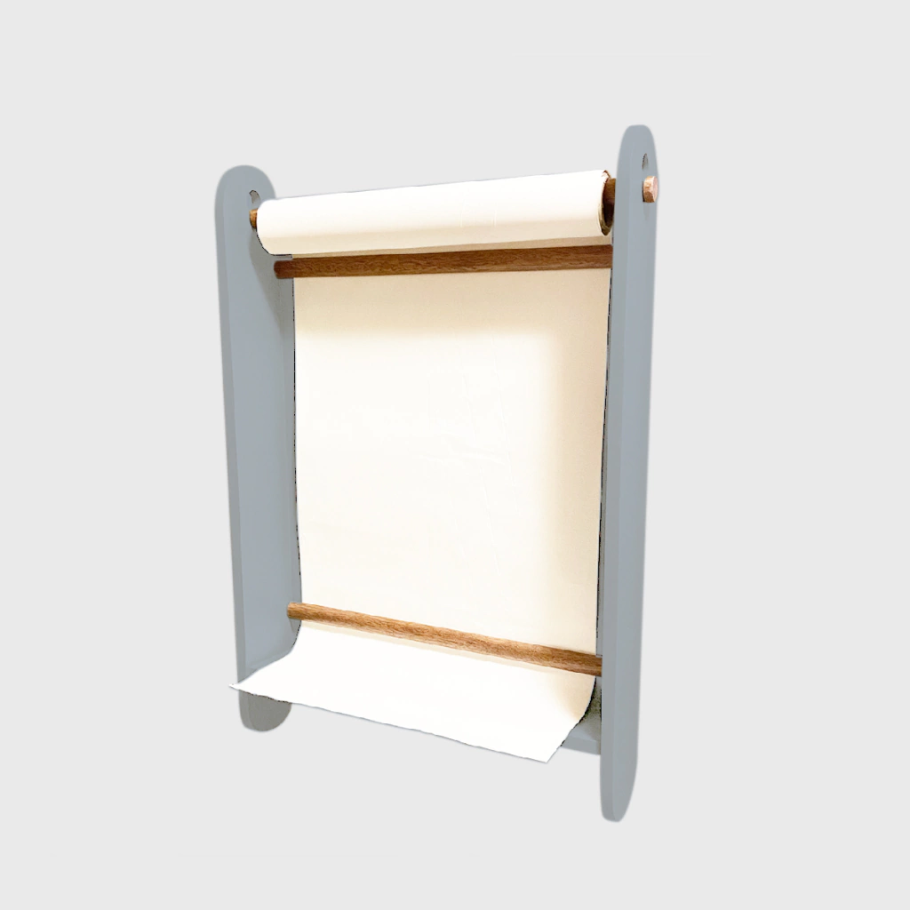 Acompanha parafusos para fixação e rolo de papel para desenho.